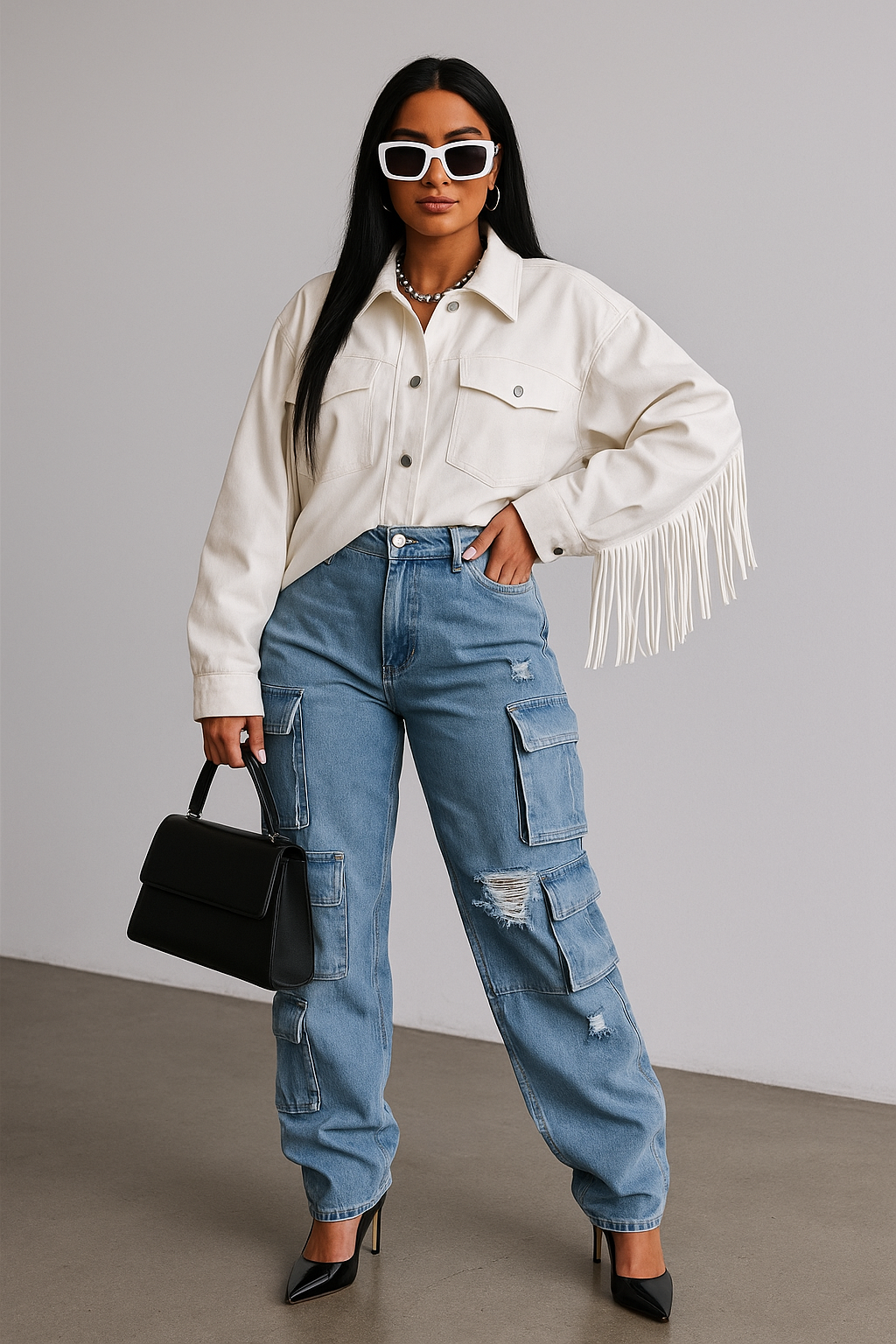 Women's High-Waisted Ombre Cargo Jeans With Multiple Pockets