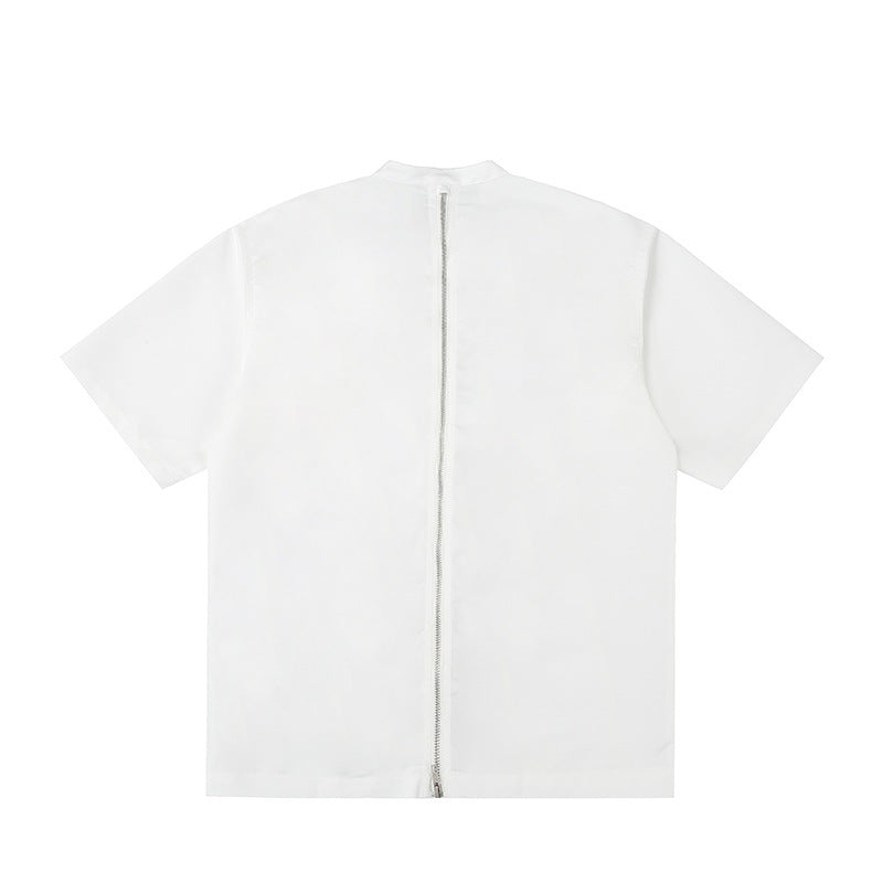 Men's Split Metal Zipper Deconstruction Padded Shoulder Shirt