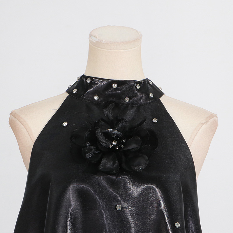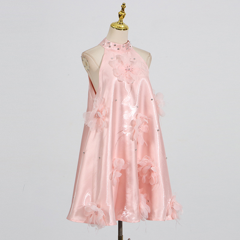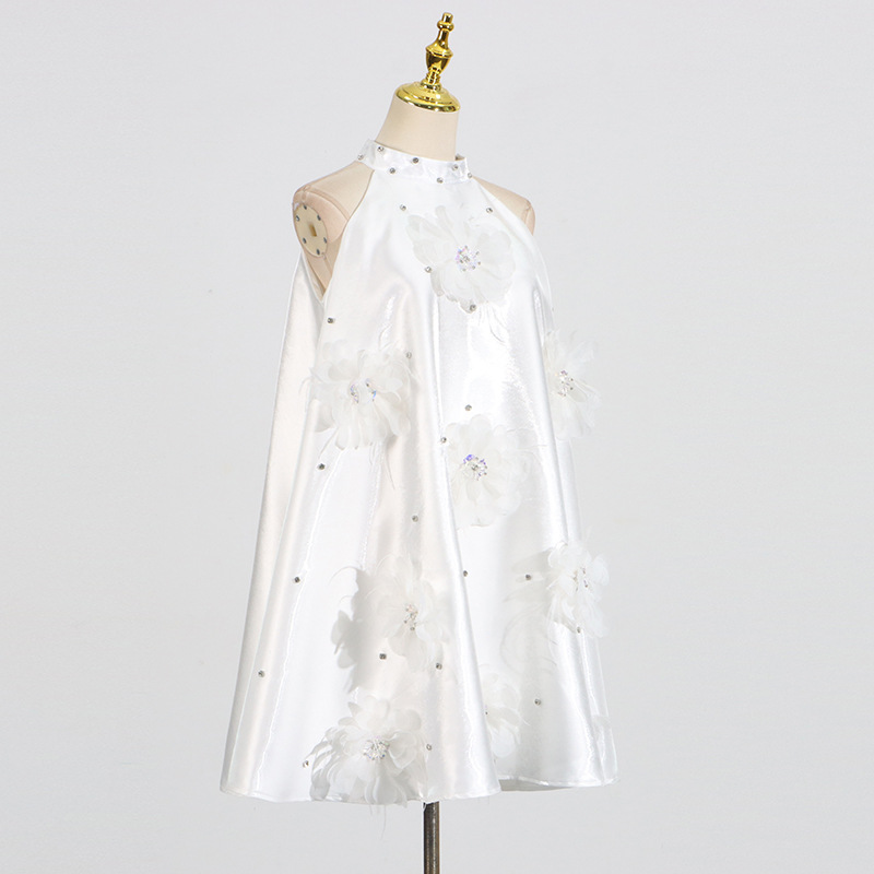 Women's Rhinestone Design Flower Stitching Mini Dress